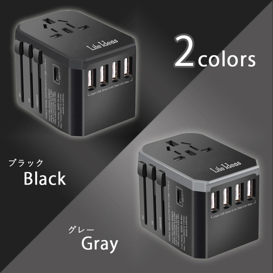A O Bf C 4種類コンセント 専用ポーチ付き Life Ideas正規品 海外変換プラグ マルチ変換プラグ 150ヶ国対応 Acアダプター Usb 4ポート Type C 1ポート 充電 出張 海外旅行 ケース付 アメリカ ヨーロッパ 中国 韓国 最大8a 安全設計 Life Ideas正規品